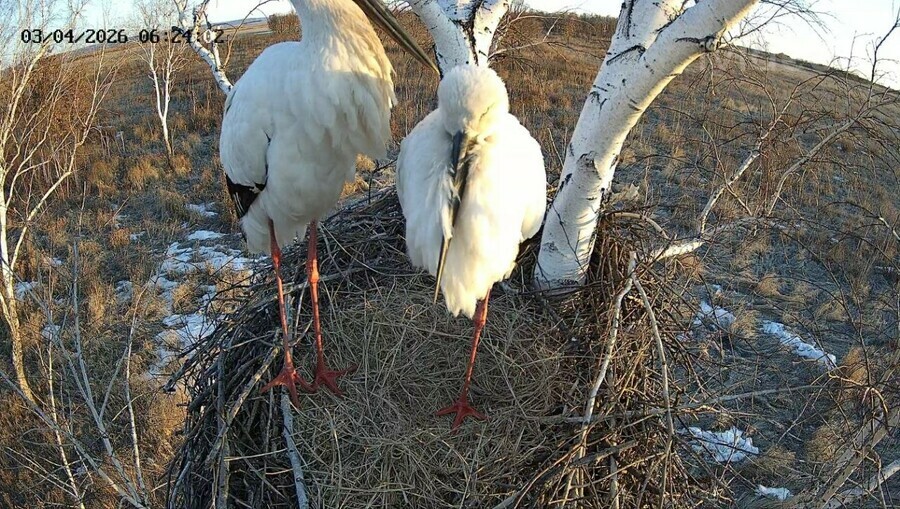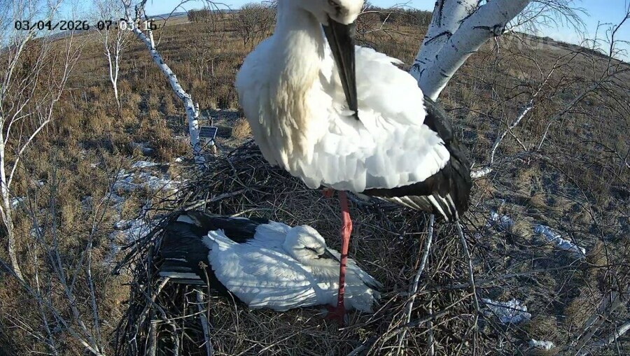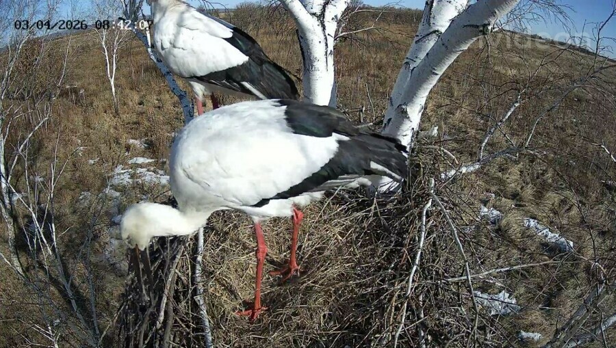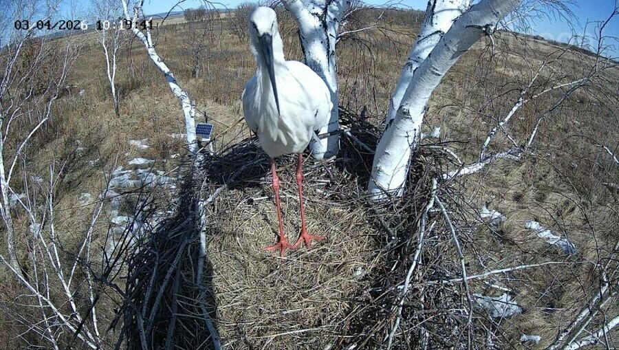 В день установки камеры аистов в гнезде не было, яйца в гнезде тоже отсутствовали. Но было видно, что гнездо уже обустраивается – лежат свежие ветки и сухая солома. Хозяева-аисты появились только на следующее утро и продолжили ремонт и обустройство жилища. Скоро должно появиться первое яйцо, считает ученый.