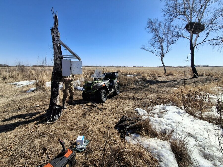 Также он опубликовал фотографии об установке оборудования и первые в этом сезоне кадры аистов Амура и Зеи.