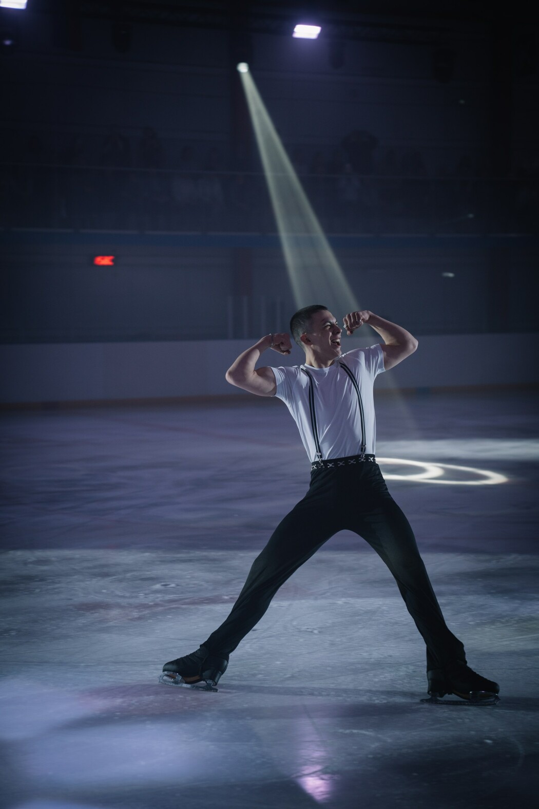 Фигуристы менялись с большой скоростью, как только закончилось выступление Ксении Гущиной, на лед под композицию L'One – «Время первых» вышли пять фигуристов-мужчин, показав различные варианты проката от прыжков до отжиманий на льду.