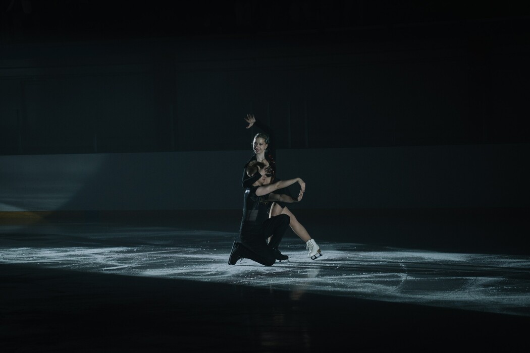 А после растопил лед и сердца десятков девушек фигурист Даниил Лужецкий. Молодой человек показал на льду трюки, сальто, отжимания и даже нижний брейк. Зал с восторгом проводил фигуриста со льда, а тем временем на лед снова вышли именитые спортсмены Елизавета Кириллова и Илья Карпов.