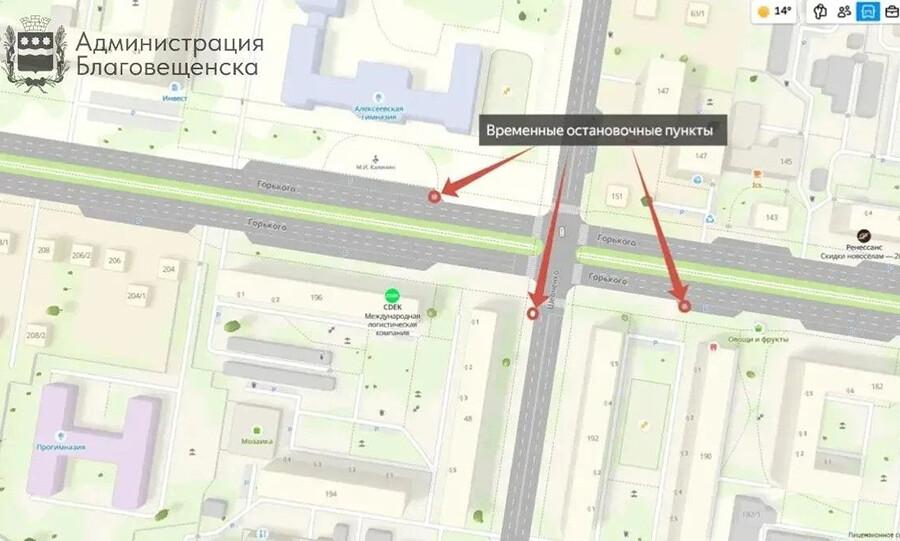 – № 12: ул. Калинина – ул. Горького – ул. Шевченко (далее по маршруту);