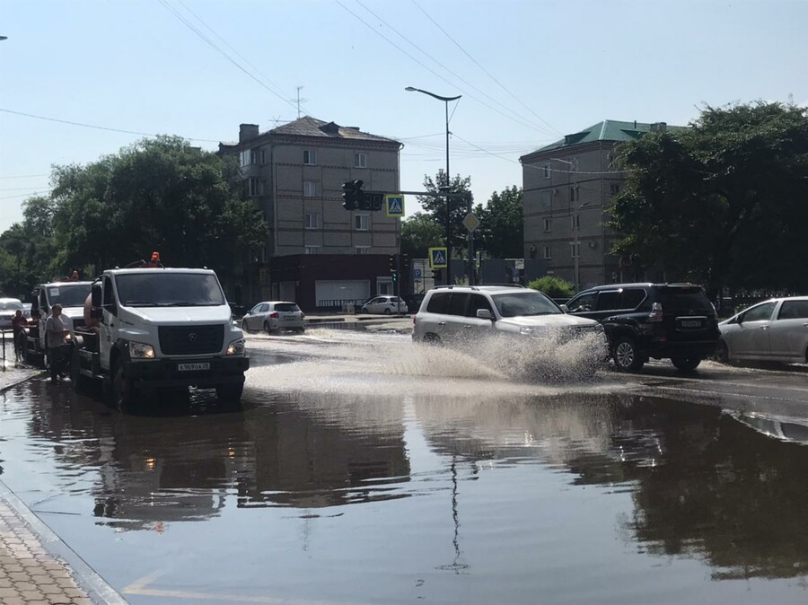 Утром, 29 июня, в амурской столице оказалась затопленной улица Ленина. Вода затопила проезжую от Кузнечной до Трудовой. Это создало большие проблемы для пешеходов, которым пришлось переходить дорогу в неположенном месте.