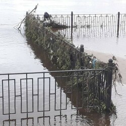 Остались на набережной и следы песка в тех местах, где проводилось берегоукрепление.