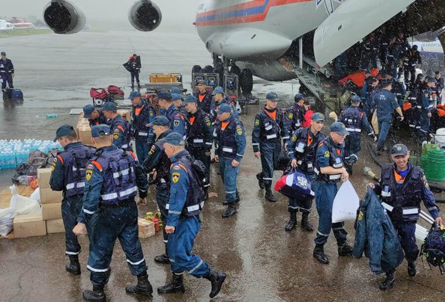 В связи со сложной гидрологической обстановкой в Амурскую область на самолете Ил-76 прибыли спасатели Сибирского спасательного центра МЧС России. Они будут оказывать помощь населению, пострадавшему от наводнения.