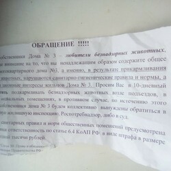 Одновременно на подъездах домов в поселке появились объявления о том, чтобы местные жители перестали кормить кошек, потому что они приносят в подъезды паразитов. По словам волонтеров, люди ошибаются, и в подъездах живут другие - "подвальные" блохи, которые не имеют отношение к животным. Тем не менее, добровольцы готовы работать с жителями, помочь в стерилизации кошек и установке кормушек для них. Накануне волонтеры выезжали обрабатывать животных от паразитов.