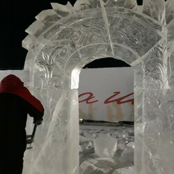 Скульпторы делают изо льда резные арки высотой 4,3 метра. Их будет четыре.