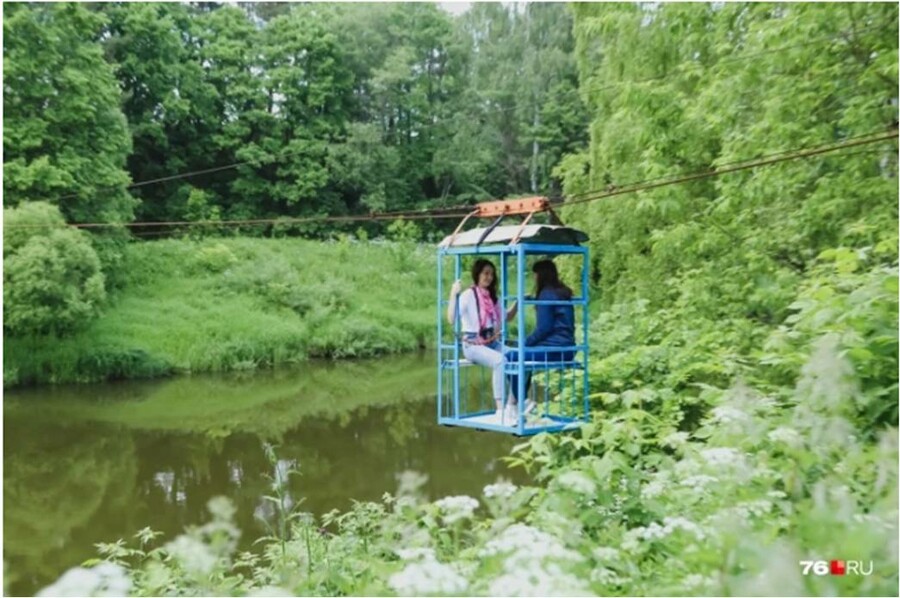Необычный фуникулер, доставляющий посельчан на другую сторону реки, работает в Ярославской области. Его смастерил местный житель Владимир Гусев — пенсионер уже полвека помогает соседям пересечь реку Которосль таким экстравагантным способом.