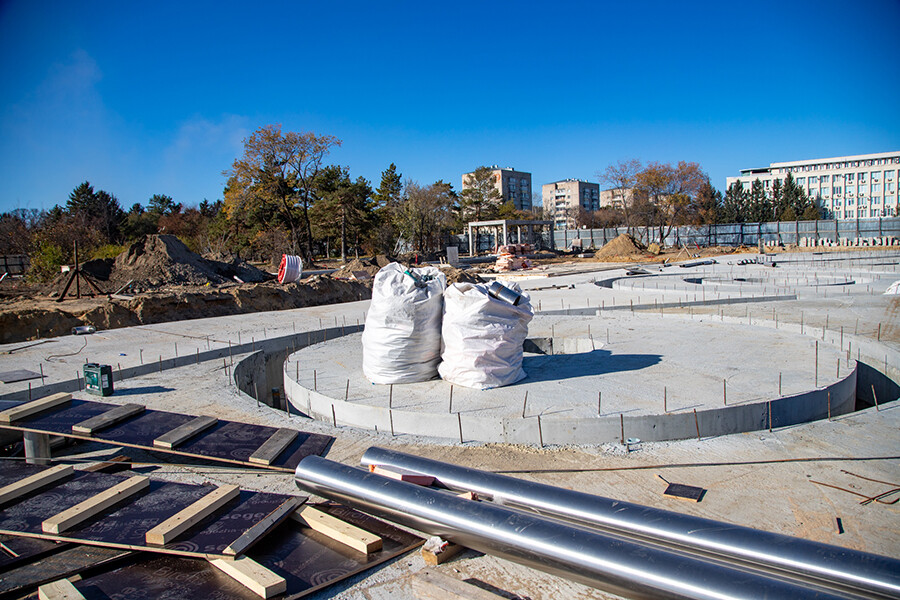 На «Трибуна Холл» в Благовещенске работы идут полным ходом. Их масштаб оценил мэр города Олег Имамеев. По его словам, 12 октября подрядчик приступил к заливке второй части фонтана. 750 кубометров бетона непрерывно зальют в течение дня.