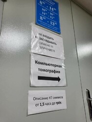 При этом в самой поликлинике в объявлении указано, что ожидание КТ-снимков от 1,5 до трех часов.