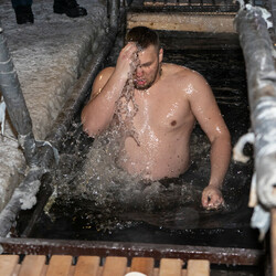 Было настолько холодно, что у окунающихся ноги и одежда прилипали ко льду и поручням.