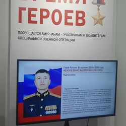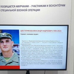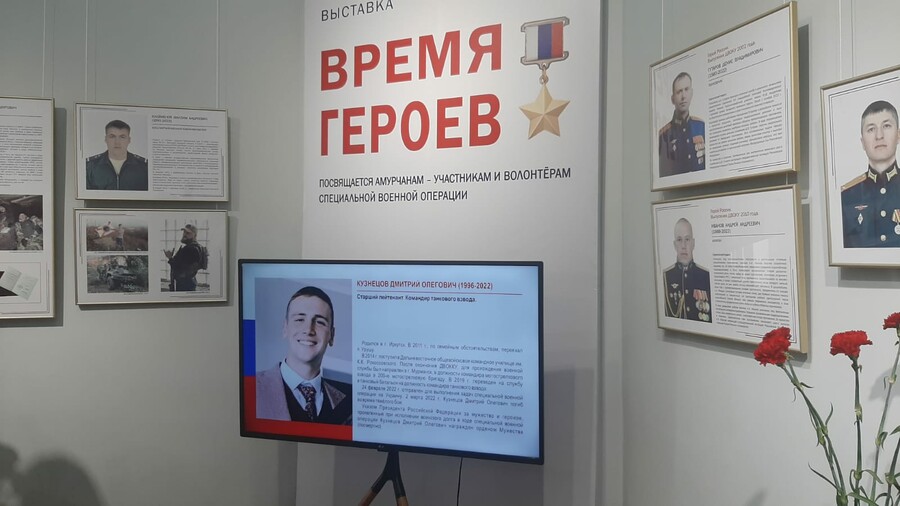 В Амурском областном краеведческом музее в преддверии 23 февраля открылась выставка, посвященная амурским бойцам – участникам спецоперации. В экспозиции, получившей название «Время Героев», представлены фотографии, документы, личные вещи, военная форма, награды, информация о боевом пути и подвигах 30-ти амурчан, погибших в ходе специальной военной операции.