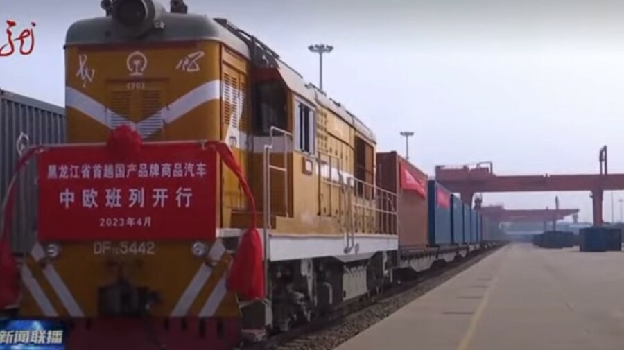 Первый грузовой поезд с автомобилями китайских брендов в воскресенье, 16 апреля, отправился за границу с центральной международной контейнерной станции Харбин. Он доставит в Россию 165 легковых автомобилей китайского производства.