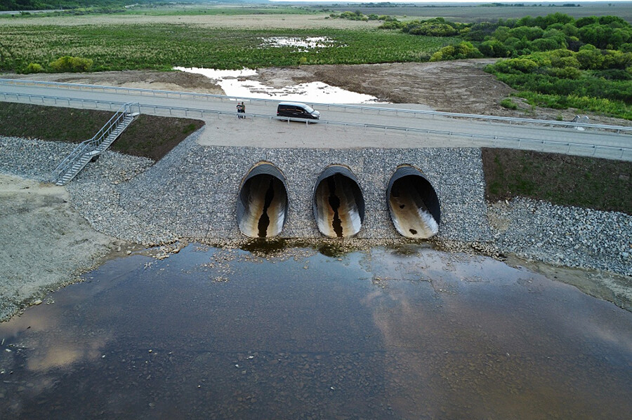 Специалисты подрядной организации демонтировали старое сооружение и выполнили устройство нового искусственного сооружения. Общая протяженность реконструированного объекта составила 1,3 километра, из которых 1,1 километра – новое направление. На основном участке реконструкции и примыканиях уложили водопропускные трубы разного диаметра. Выполнили слой земляного полотна из скального грунта и покрытие из щебеночно–песчаной смеси. Укрепили все матрасами «Рено» – это сетчатые изделия для защиты берегов и склонов с заполнением камнями. Также подрядчик установил новые дорожные знаки, сигнальные столбики и металлические барьерные ограждения. Мост введен в эксплуатацию.