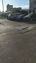 Другой мужчина сообщил, что со стороны улицы Василенко на парковке лежит оконная рама и осколки. Еще одно разбитое окно нашли возле дома 14/1 на Игнатьевском шоссе.
