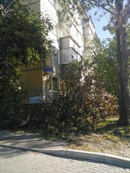 В районе дома 8 на Дьяченко ветер сломал деревья.