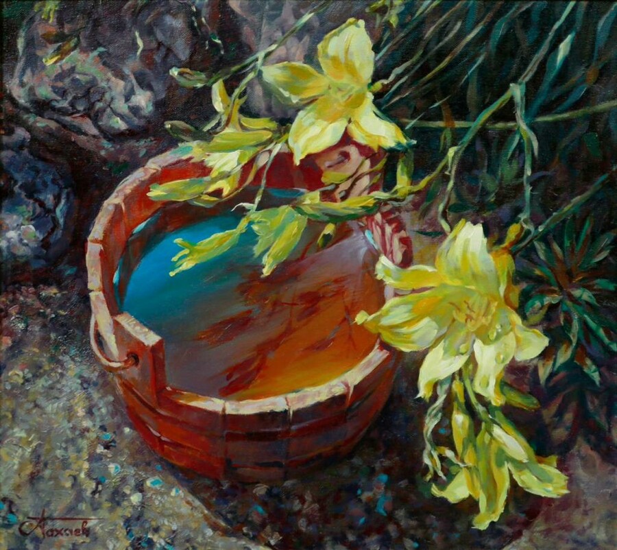 «В нашей коллекции работы Анатолия Тахаева занимают особое место. Они редки по красоте и сложны по стилю исполнения, разнообразны по образу и сюжету. Почерк этого художника настолько уникален и притягателен, что его картины можно рассматривать часами», – характеризует работы художника директор галереи Сергей Швецов.