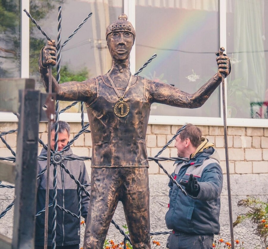 В Кунгуре Пермского края около лыжной базы «Снежинка» установили скульптуру «Лыжник» работы местного кузнеца. Местные жители его тут же окрестили мужем нововоронежской Алёнки. Новый арт-объект шокировал даже президента Федерации лыжных гонок России Елену Вяльбе.
