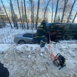 Два автомобиля столкнулись и слетели с дороги. Водителю легковушки потребовалась помощь. На место выехали пожарные пожарной части № 63 поселка Серышево Амурского центра ГЗ и ПБ.