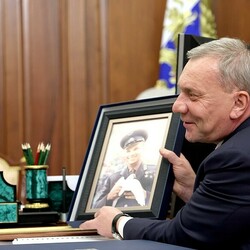 «Я хотел бы вам подарить портрет, который является символом павильона космонавтики, который после реконструкции вы открывали в 2018 году. Смотря на этот портрет, хотелось бы, чтобы вы наполнялись оптимизмом и уверенностью, что у нас все получится», – сказал Борисов.