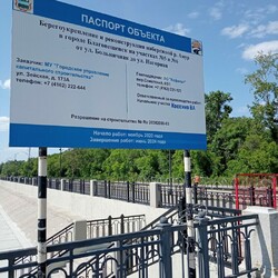 При этом на паспорте объекта, установленном перед строящейся частью набережной указан срок окончания работ – июнь 2024 года. Однако спустя четыре года после начала строительства, участок новой набережной так и не был сдан. Пройти дальше участка от Больничной не представляется возможным: установлен забор и запрещающие проезд и проход знаки.