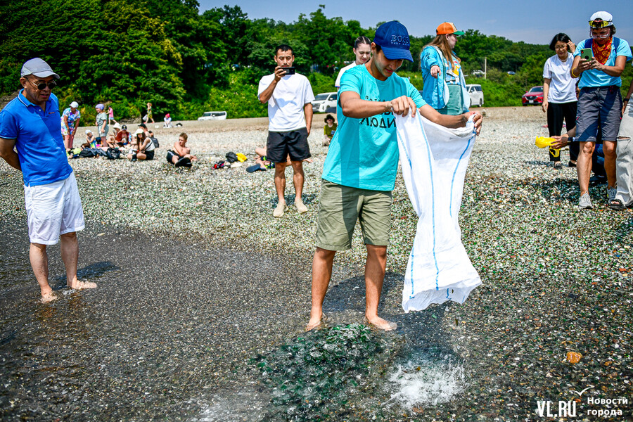 «Мы волонтёры и путешественники, – отметили волонтёры лиги ходьбы «Женьшень» Людмила Ждамирова и Лилия Пуховаяженщины. – Жаль, что объявление увидели только вчера, всем разослали, по всем чатам отправили, но пока больше никого, кроме нас, нет. Конечно, хочется, чтобы эта красивая бухта сохранилась. Эти стёкла особенно красивые, когда мокрые, после дождя, например. И хочется, чтобы было чисто, аккуратно, чтобы люди приезжали и смотрели. Мы же здесь отдыхаем, это наша природа. Мы с «Женьшенем» недавно ездили в Белоруссию – там чисто, красота! Почему мы такого сделать не можем? Это же наше, его надо беречь. К экологическим акциям мы всегда присоединяемся и мусор вывозим отовсюду, где путешествуем. А таких пляжей всего два в мире – в Калифорнии и у нас. Она же нас тоже поднимает в рейтинге туристических мест. Единственное – китайцы всё вывозят, несмотря на объявление. Считаем, что сегодня произошло действительно значимое событие, когда стёкла досыпали».