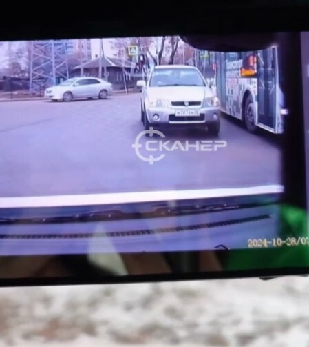 В Благовещенске легковой автомобиль создал аварийную ситуацию на перекрестке улиц Лазо и Горького. Он выехал по правой полосе и начал поворачивать налево.