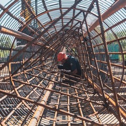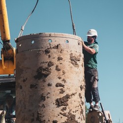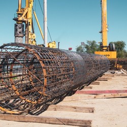 Процесс устройства буронабивных свай заключается в погружении в заранее пробуренное отверстие металлокаркаса и заполнении полости скважины бетоном. Фундаменты 23-й и 24-й опор состоят из 12 свай каждый, длина сваи – 25 метров.
