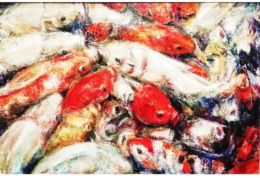 «У меня выставлено три работы: "Кои", "Гранаты" и "Нирвана". Кои – это такие карпы, в Японии и в Китае они символизируют удачу. В буддизме карп – символ мужества и бесстрашия, достижения целей.
