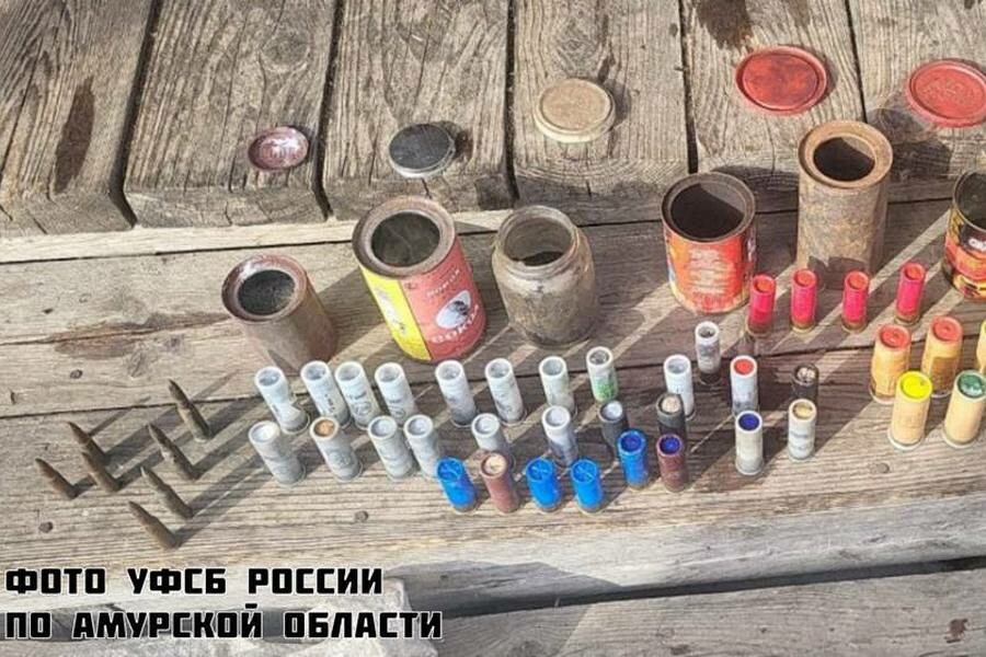 В декабре 2022 года мужчина обнаружил на территории приусадебного участка мешок с бездымным и дымным порохом общей массой 991 грамм в восьми банках и четырьмя вышибными патронами, предназначенными для воспламенения дополнительных зарядов, а также в патронах образца 1908 года и 1943 года, которые он отнес в свой гараж и хранил до момента обнаружения сотрудниками УФСБ России по Амурской области.