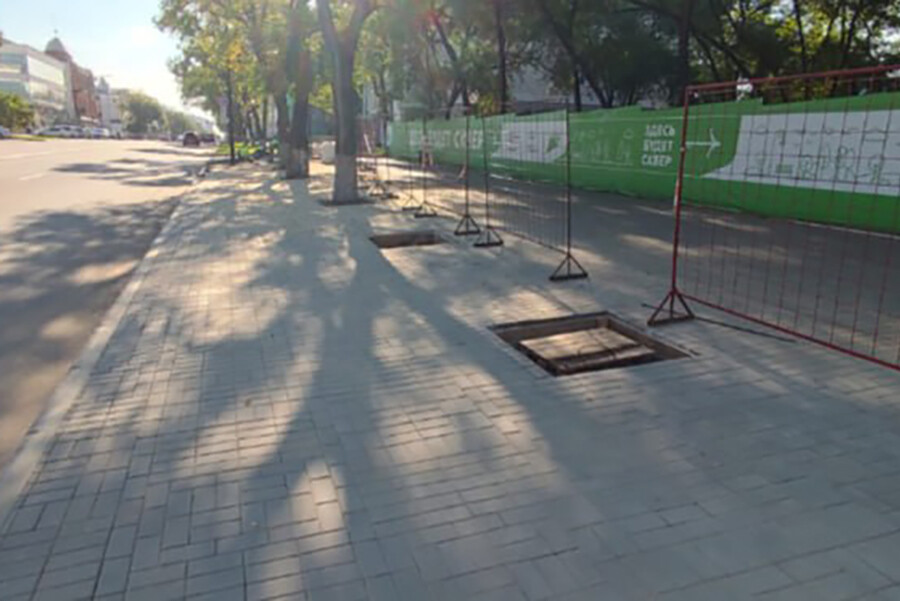 В Благовещенске продолжается благоустройство сквера на пересечении Ленина и Святителя Иннокентия. Специалисты укладывают тротуарную плитку и устанавливают малые архитектурные формы. В новом общественном пространстве разместят скамейки и качели, информационные стенды и арт-объект в виде деревянного верблюда.