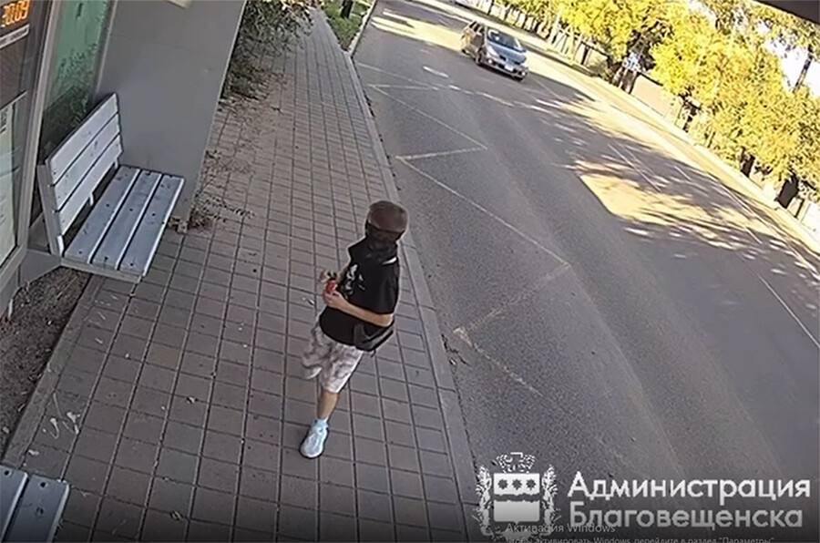 В Благовещенске от рук хулигана пострадала остановка в районе Красноармейской – Мухина. Ребенок взял камень, лежащий недалеко от остановки, и разбил стекло автобусного павильона. Момент запечатлели камеры «Безопасного города».
