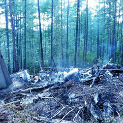 Далее по траектории полета Ан-24 были обнаружены поврежденные деревья и части правой консоли крыла. Вот так выглядели крупные фрагменты правой консоли крыла, обнаруженные на вершине сопки.