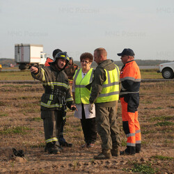 Условное горение фюзеляжа, разлитого под ним топлива и обломков шасси ликвидировано. Экипаж и пассажиры в безопасности, пострадавшим оказана медицинская помощь. Так сценарий учений описали в амурском МЧС.