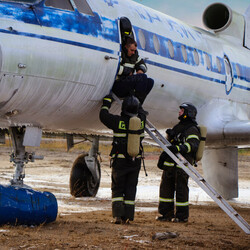 В первые минуты на место «происшествия» прибывают три боевых расчета службы противопожарного и аварийно-спасательного обеспечения полетов аэропорта. Их первоочередная задача — тушение возгорания силовых установок и предотвращение взрыва из-за розлива топлива при помощи лафетных установок. К этому времени бортпроводники успели эвакуировать пассажиров, но на борту остались порядка семи человек с различными травмами, зажатые между покореженными сидениями. Пока корпус самолета покрывает пена для снижения температуры и предотвращения распространения пламени, руководитель тушения пожара дает команду сформировать два звена газодымозащитной службы для спасения условно пострадавших пассажиров.