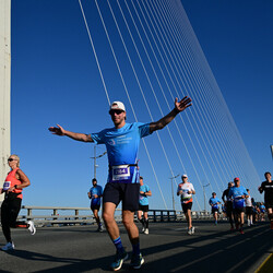 «Мне понравилось, город красивый. Тем более, по мостам нельзя ходить, а здесь у тебя есть шанс пробежать по ним и осмотреть всё. Трасса, если бы не горки, была бы очень лёгкая. Она очень видовая, ты бежишь, смотришь и тебя это захватывает, голова отдыхает быстро. Я когда развернулся, даже не заметил, как пробежал, из-за того, что меняется картинка: тут мост, там мост, море, – всё это красиво очень. Дистанция для головы очень легко далась», – рассказывает занявший первое место в дистанции на 28 километров Алексей Гущин, который приехал из города Орёл.