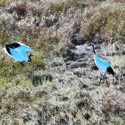 Амурский ученый-эколог Антон Сасин передал амурчанам привет от пары японских журавлей Снежинки и Подснежника. Сейчас они кормятся на лугах близ села Гродеково.