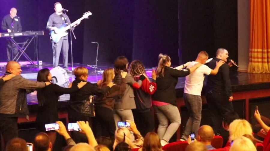Вокалист Евгений Капустянский много работал с залом: выбрал из зрительниц «смотрящую», пригласил желающих потанцевать на сцену и организовал поезд до Бутырки.