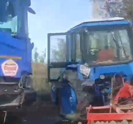 В Прогрессе 2 октября произошло жесткое ДТП. Там столкнулись самосвал и трактор.