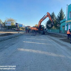 В столице Приамурья продолжается масштабное обновление дорожной сети. На нескольких ключевых магистралях города в рамках нацпроекта «Инфраструктура для жизни» меняют не только дорожную одежду, но и подземные коммуникации. Одна из улиц, которую ремонтируют в этом году, – Мухина.