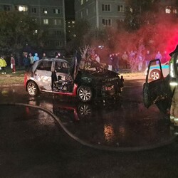 По словам очевидцев, одна машина выезжала из двора вторая ехала прямо. После столкновения одна машина загорелась, с нее пламя перекинулось на вторую. Оттуда успели выйти люди, в машине был маленький ребенок. Что с людьми из другой машины, неизвестно.