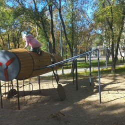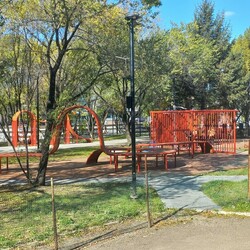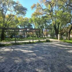 Этот сквер на пересечении улиц Калинина и Октябрьской кажется наиболее обжитым. По территории гуляют родители с детьми, установлен игровой комплекс, и здесь много деревьев..