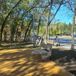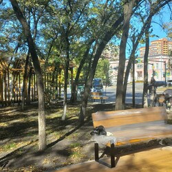 Лавочки стоят лицом к дороге, а не к скверу. Это показалось немного странным решением. Напротив находится областной музей, вероятно, лавочки развернуты, чтобы любоваться им (не шумной же улицей Ленина).