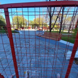Ограды уже нет, установлено несколько конструкций, похожих на лавочки.