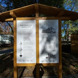 У входа установлены стенды с информацией о купеческом Благовещенске.