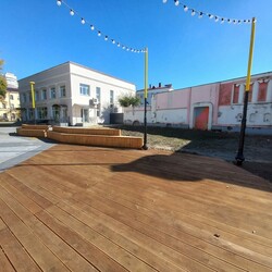 Эта территория менее всего похожа на сквер. Пока пространство здесь больше напоминает пустырь, который заложили новенькой плиткой.