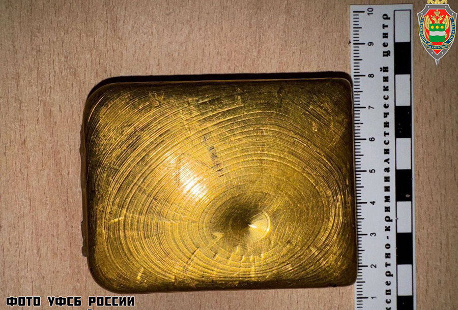 Как позже показала экспертиза, общая масса слитка составила 1061,9 грамма, где 1058,18 грамма было химически чистым золотом и 1,49 грамма – серебро. Общая стоимость изъятых драгоценных металлов по курсу ЦБ РФ на день изъятия составила более 9,3 миллиона рублей.