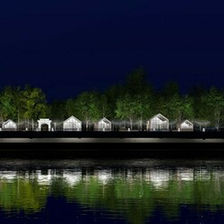 На участках парка, примыкающих к набережной, разместятся павильоны, зона отдыха с шезлонгами, входные порталы — светящиеся ворота с отсылками к русскому зодчеству. Кроме того, в парке появятся, зоны общения и спокойного отдыха с беседками, сцена-подиум для проведения мероприятий и кинопоказов под открытым небом.