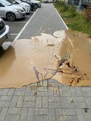 Подрядчик ООО «АКС» проводил работы по замене электрического кабеля. Во время бурения произошел разлив строительной смеси на тротуар. Дополнительно осложнила ситуацию поломка вакуумной техники, предназначенной для уборки.