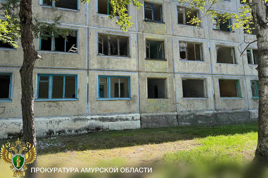 Прокуратура Райчихинска провела проверку и установила, что на улице Победы расположено нежилое заброшенное здание. Оно находится в жилом квартале, но не огорожено, и доступ внутрь не ограничен.