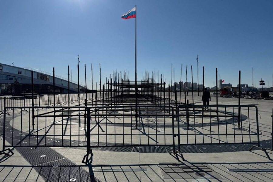 Как сообщили в мэрии города, параллельно со сбором горки идет консервация фонтана для его защиты в зимний период. Опоры горки устанавливают на специальные конструкции, чтобы не повредить плитку на аллее фонтанов.